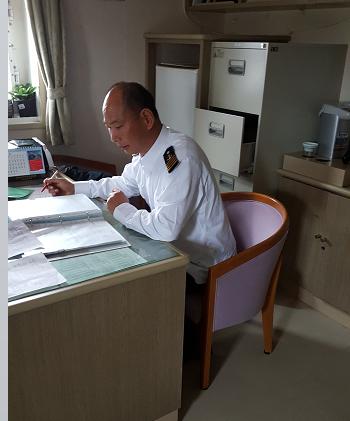 行前培訓(xùn)結(jié)束后,由公司總經(jīng)理?xiàng)羁私軒ш?duì),一起從天津經(jīng)由北京南站、北京站乘車趕往揚(yáng)州,大家經(jīng)過一夜的車程,于2018年11月11日早上7點(diǎn)半到達(dá)揚(yáng)州火車站。隨后在代理的安排下,及時(shí)辦理了上船人員的邊防、海關(guān)手續(xù),并于當(dāng)天上午10點(diǎn)鐘上船接班。公司楊總利用揚(yáng)州更換船員的機(jī)會(huì),做了訪船工作。船舶在船長劉廣棟、輪機(jī)長金宏余的領(lǐng)導(dǎo)下,船舶氛圍和諧,維修保養(yǎng)工作做的很到位,船舶整潔明亮,船容船貌保持良好,在船全體人員工作穩(wěn)定,遵守船東規(guī)章制度,在所到港口的PSC檢查中均以零缺陷通過檢查,受到船東的認(rèn)可。