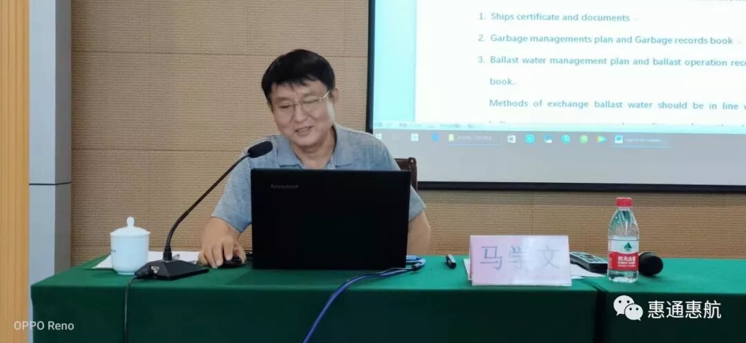 時間過的真快,到了下午15:30,天津理工大學(xué)海運學(xué)院教授、遠洋船長崔建輝老師就如何加強船舶管理、在船工作期間作為船長、大副在一些相關(guān)業(yè)務(wù)上的處理方式及應(yīng)對政策為參訓(xùn)人員做了講解。崔老師為這次培訓(xùn)做了認真的備課,用規(guī)則和實際案例,為大家詳細做了實用性的案例培訓(xùn),收效很好!