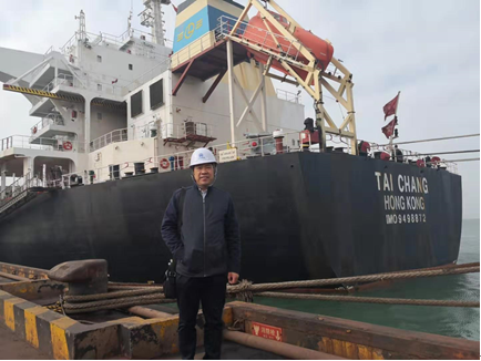 2019年11月5日,天津市惠通海員管理服務(wù)有限公司派員管理的M/V TAI CHANG (泰昌輪),靠泊河北黃驊港,為了更直接的了解船上船員的工作及生活情況,天津惠通公司楊克杰總經(jīng)理親自到黃驊港登輪訪船。