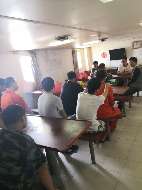 楊總、高維主管及船東何經(jīng)理一行人乘坐小船,于早上10點(diǎn)到達(dá)“港洋”輪所在的黃岐外錨地,走過舷梯,進(jìn)入船艙,來到船長辦公室。楊總通過座談的方式向陳增寶船長了解“港洋”輪近期的船舶運(yùn)營情況及船員的工作和生活情況。隨后楊總結(jié)合公司規(guī)章制度及近期的安全生產(chǎn)情況,就如何加強(qiáng)與船東配合及溝通,對(duì)全體船員進(jìn)行傳達(dá)和溝通,同時(shí)著重說明了接船后的一些具體的要求和工資待遇,取得了不錯(cuò)的效果。