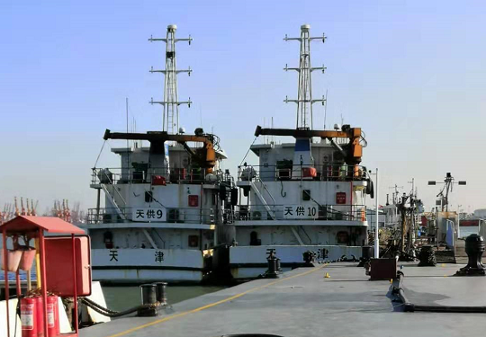 2020年1月2日,雖然在寒冬里,但這天風(fēng)和日麗、藍(lán)藍(lán)的天空飄著祥和的白云。這天,我公司2019年12月1日新接管的中遠(yuǎn)海運(yùn)天津公司所屬的供水船舶天供9輪、天供10輪,迎來了自接船1個(gè)月來的大檢查。