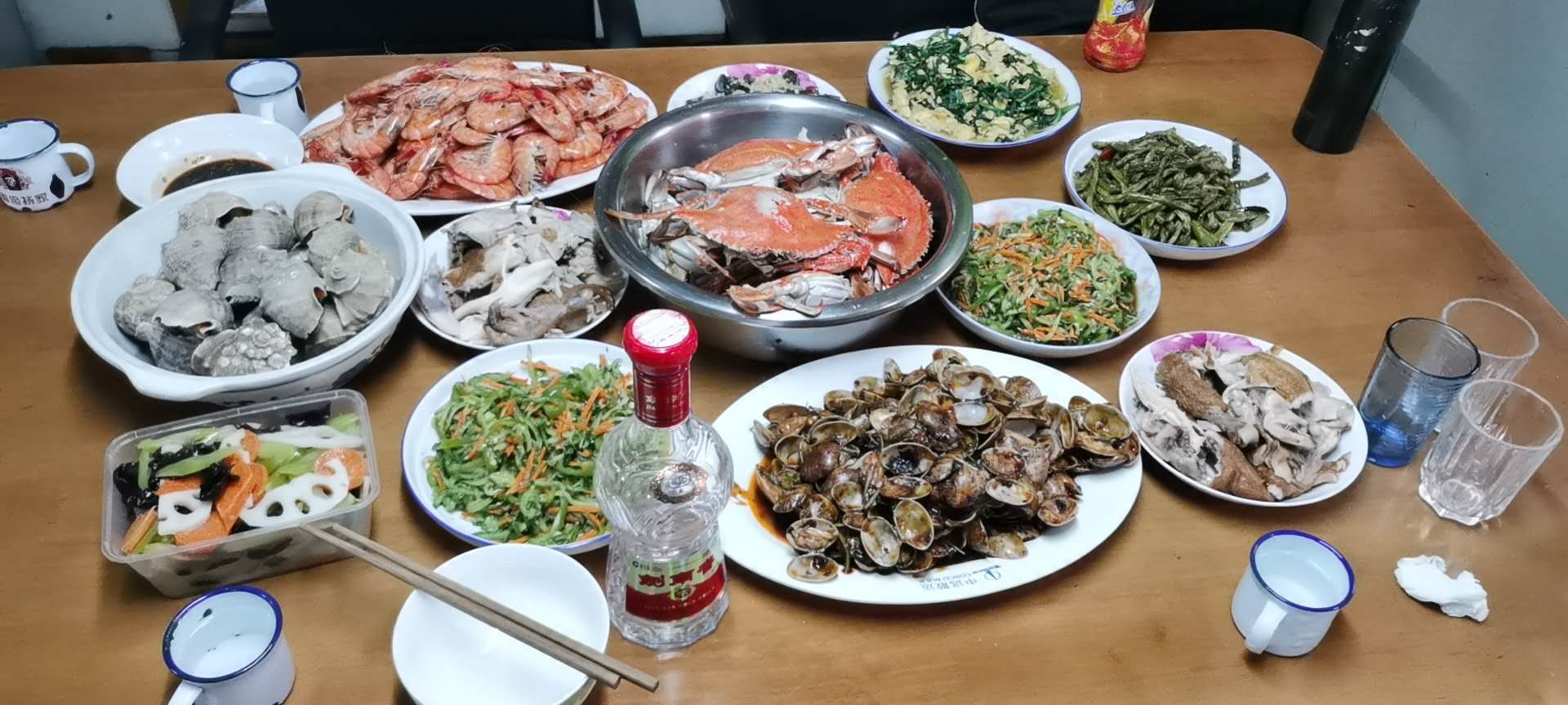 海員的伙食以海鮮為主,蔬菜水果是保存在冰箱里的。如果在國外拋錨時間長,錨地有魚,大家能釣魚,做一桌海鮮打打牙祭。同事之間一杯小酒,兩三好友,紅燒清蒸,隨意發(fā)揮,聊聊日常,開些無傷大雅的玩笑,生活悠閑且自在。