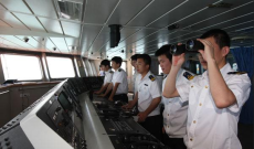 好在隨著日子一天天過去,我學(xué)到的東西越來越多,也與周圍人相處越來越融洽。平時(shí)航行時(shí),我跟著水頭干活,水頭人很好,我有什么不會(huì)的總是手把手地交給我;靠港的時(shí)候我跟著一水值八到十二的班,這時(shí)候三副也值班,他是我學(xué)長,我有哪里做的不好的時(shí)候他總是兇巴巴地批評(píng)我,然后再一點(diǎn)一點(diǎn)給我講明白。跟我一起值班的一水也極好,他帶著我時(shí)無論做什么,都會(huì)一邊做一邊給我說明,慢慢地教我,生怕我有哪里不懂。